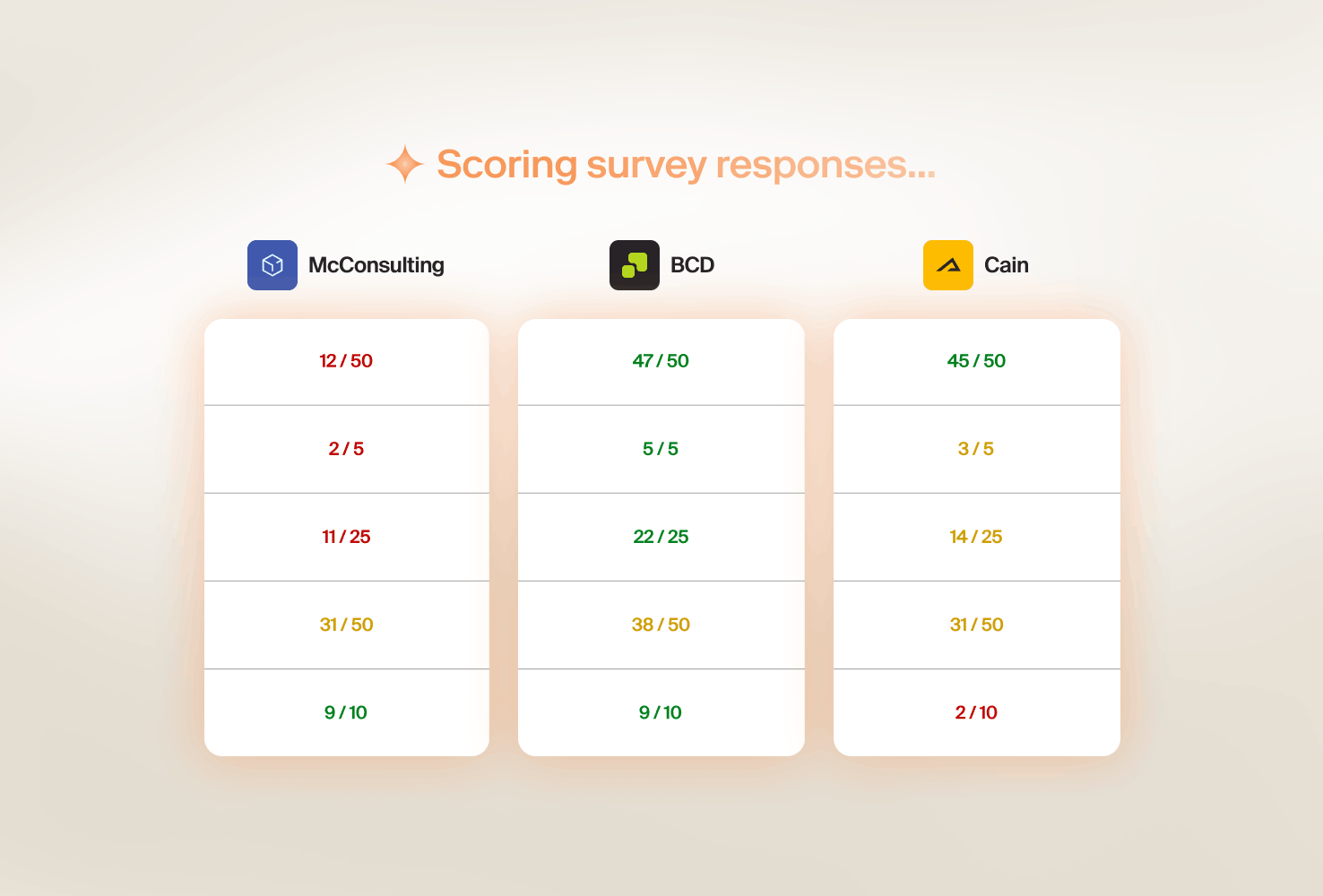 Score and compare supplier responses using structured criteria, weighted sections, and automated normalization.