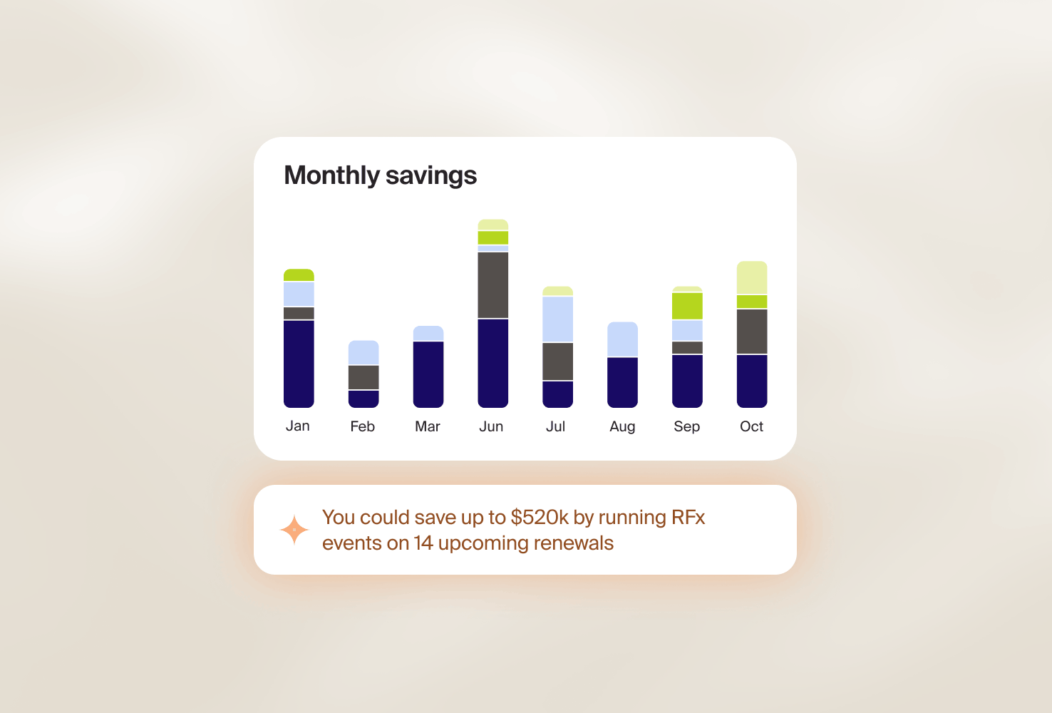 Identify preferred suppliers and track realized savings, renewals, and sourcing performance in one dashboard.