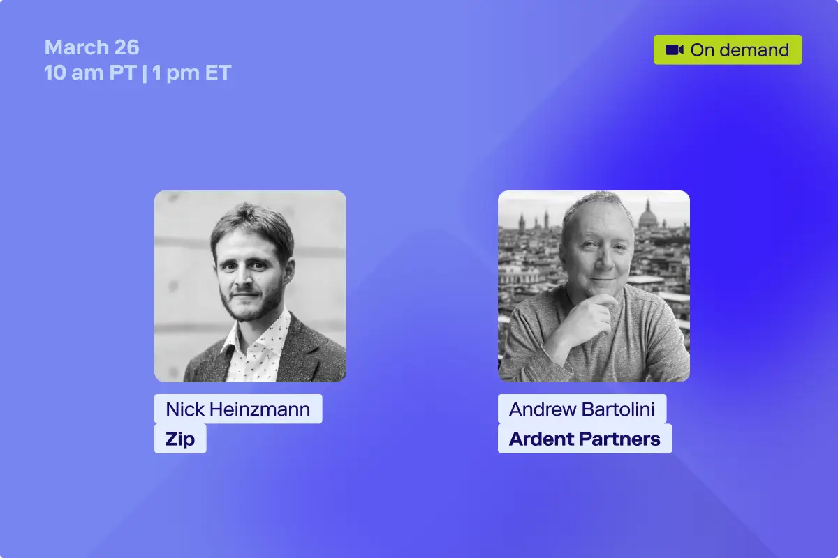 Andrew Bartolini (Ardent Partners) and Nick Heinzmann (Zip) designed this session specifically for the CPO-CFO partnership. They will discuss the need for modern procurement teams to move past the 'silo' conversation and present the blueprint for a unified Intake-to-Pay flow, where governance is embedded, transactions are frictionless, and the data is robust and accurate.