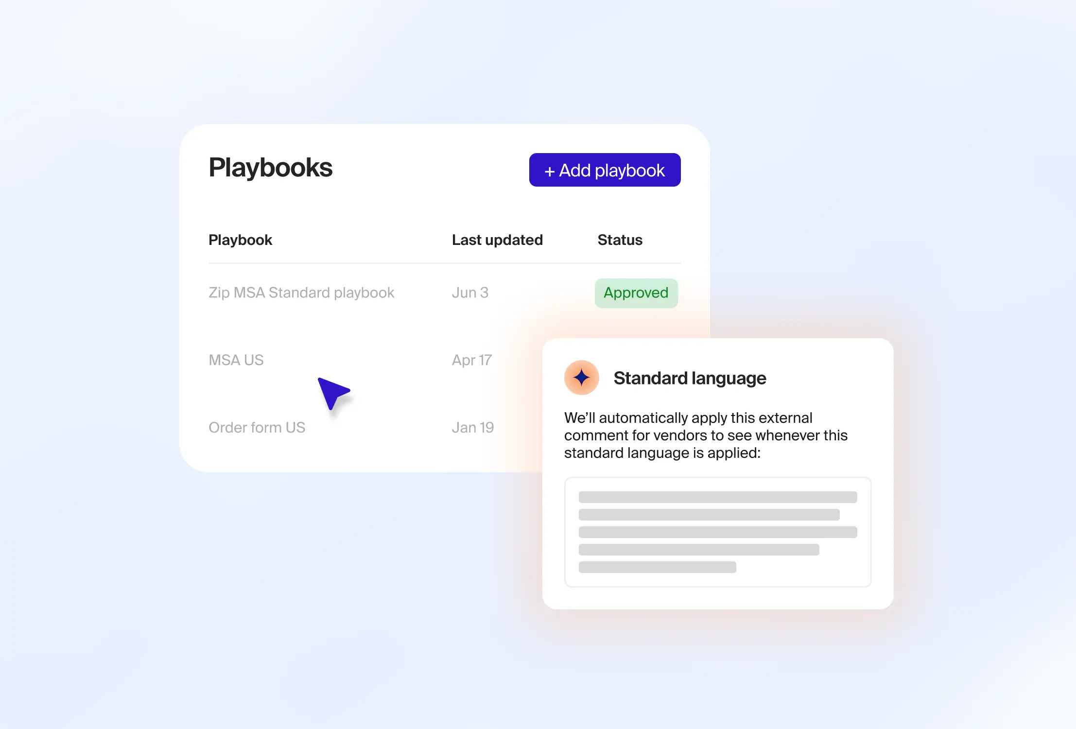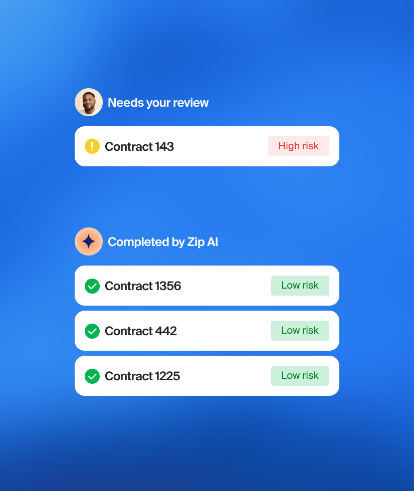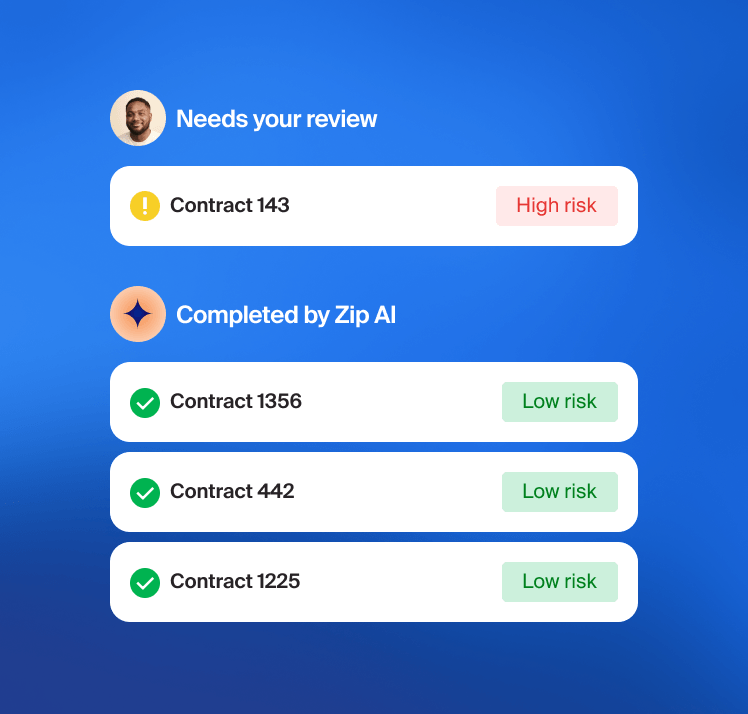 Yes. When you receive a contract, Zip’s AI compares it against your legal playbooks and flags language that falls outside accepted terms. Legal can spend their time focused on items that need their expertise.