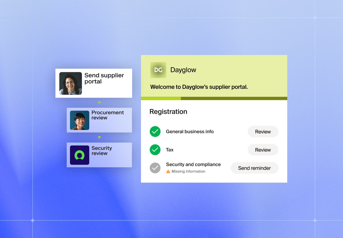 Accelerate supplier intake with streamlined reviews and built-in checks.